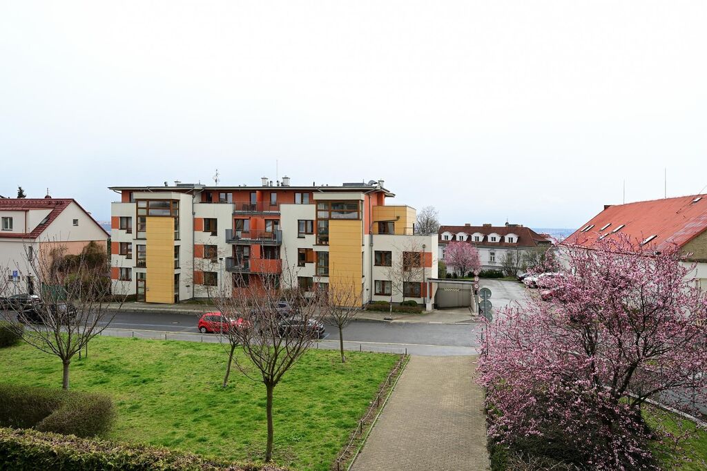 Moderní plně zařízený byt 3+kk 72,6 m2 s balkonem 5 m2, Praha 8, Ke Stírce, situovaný ve 3.patře pěkné novostavby, s výhledem na Prahu.