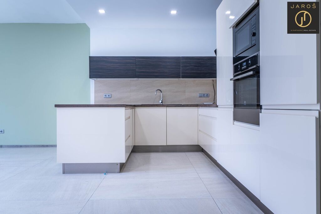 Nabízíme vám k prodeji moderní řadový rodinný dům o dispozici 5+kk s celkovou plochou 234 m² v projektu Rezidence Park Svitavy. Dům nabízí prostorný obývací pokoj s kuchyňským koutem, který přímo navazuje na terasu a zahradu směrem do parku. V přízemí se dále nachází koupelna, pracovna a zádveří. Mezipatro nabízí vstup na terasu směrem do ulice. V patře jsou čtyři samostatné pokoje, koupelna a balkon s příjemným výhledem do zeleně, přístupný z obou pokojů. Součástí je také garáž přístupná ze vstupní chodby a dvě parkovací stání přímo před domem.