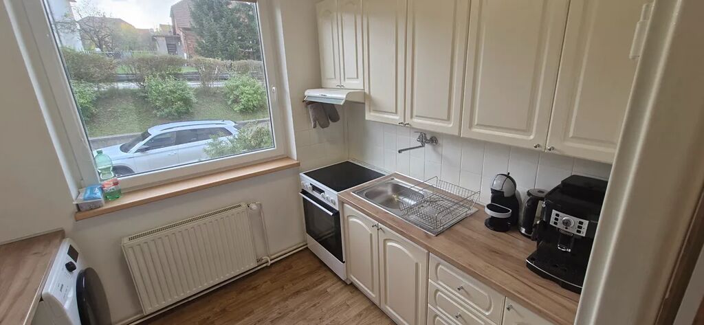 V ložnici je k dispozici manželská postel a prostorné úložné skříně. Obývací pokoj je vybaven sedací soupravou, jídelním stolem se židlemi, obývací stěnou a velkoformátovou televizí se sound barem, což poskytuje komfortní zázemí pro každodenní život i odpočinek. Kuchyně je vybavena všemi potřebnými spotřebiči, jako je lednice, trouba, digestoř, mikrovlnná trouba a sušička. Koupelna je vybavena vanou, toaleta je samostatná.