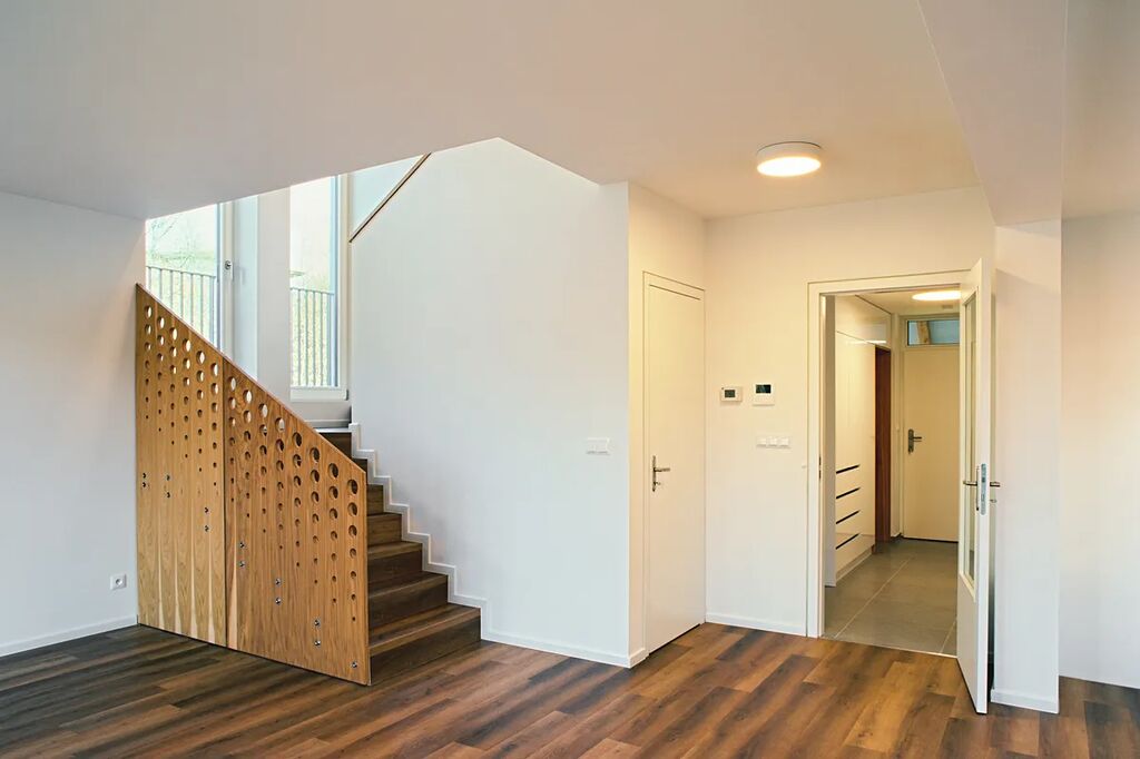 Nabízíme k pronájmu pohodlný mezonetový byt 4 + kk v novém bytovém domu v Dolních Břežanech. Dům o devíti bytových jednotkách, navržený ateliérem Jakuba Ciglera, se nachází v centrální části obce. Byt je vybaven kuchyňskou linkou s indukční varnou deskou, myčkou, troubou a digestoří, má vlastní plynový kotel, vstupní předsíně jsou vybaveny vestavěnými úložnými prostory. V pokojích jsou položeny vinylové podlahy, v koupelně a předsíni dlažba. Okna jsou vybavena stínícími roletami, terasy zastiňují baldachýny. K bytu náleží komora, přístupná z chodby. Je možné pronajmout si venkovní parkovací stání. Byt je klimatizován.