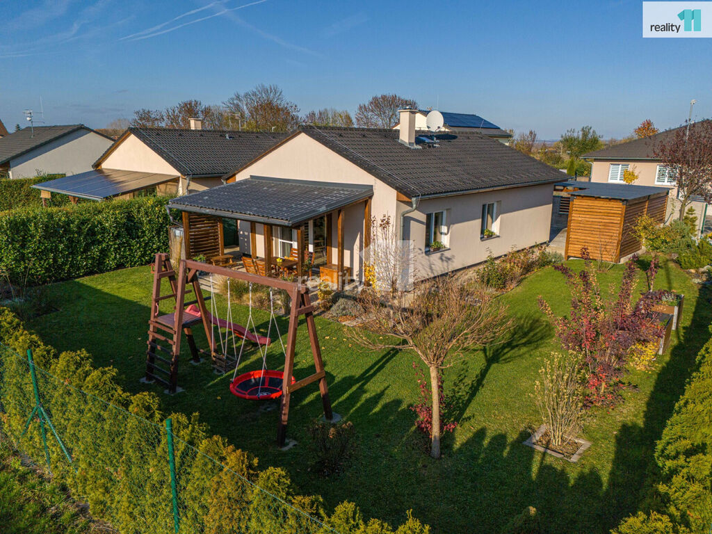 Dům byl zkolaudován v roce 2017 a působí velmi udržovaným a příjemným dojmem. Celková plocha domu činí 98 m², z toho čistá obytná plocha je 78 m² a dalších 20 m² tvoří zastřešená terasa, která plynule navazuje na obývací pokoj a v létě se stává jeho přirozeným prodloužením. Celková plocha pozemku činí 500 m² a nechybí zde ani parkovací stání, pergola či zahradní domek.