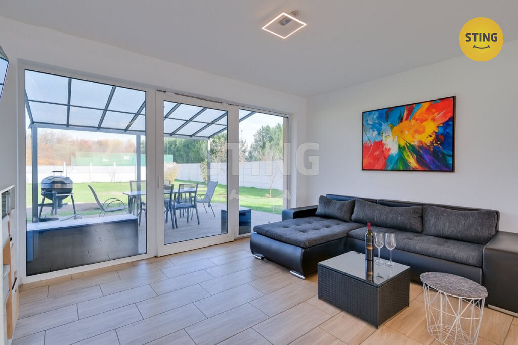 Nabízíme k prodeji moderní a prostorný dům o dispozici 6+kk s užitnou plochou 148 m², situovaný na pozemku o velikosti 1000 m². Tento dům představuje dokonalou kombinaci komfortu moderního bydlení a klidného, přírodou obklopeného prostředí. Soukromá ložnice s vlastní koupelnou poskytuje komfort a soukromí, zatímco podlahové vytápění a krbová kamna vytvářejí příjemnou a útulnou atmosféru. Dům je zařazen do energetické třídy B, což zajišťuje úsporné a efektivní provozní náklady.