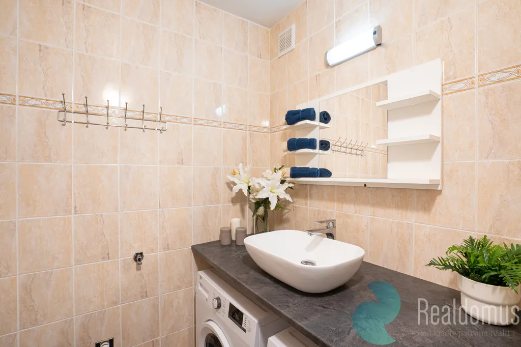 Po vstupu do bytu chodba s vestavěnou skříní. Chodba je spojena s otevřeným a prostorným obývacím pokojem a kuchyní. Vkusná, moderní koupelna s vanou. Za obývacím pokojem je samostatný, přepažený pokoj, odkud je vstup do ložnice.