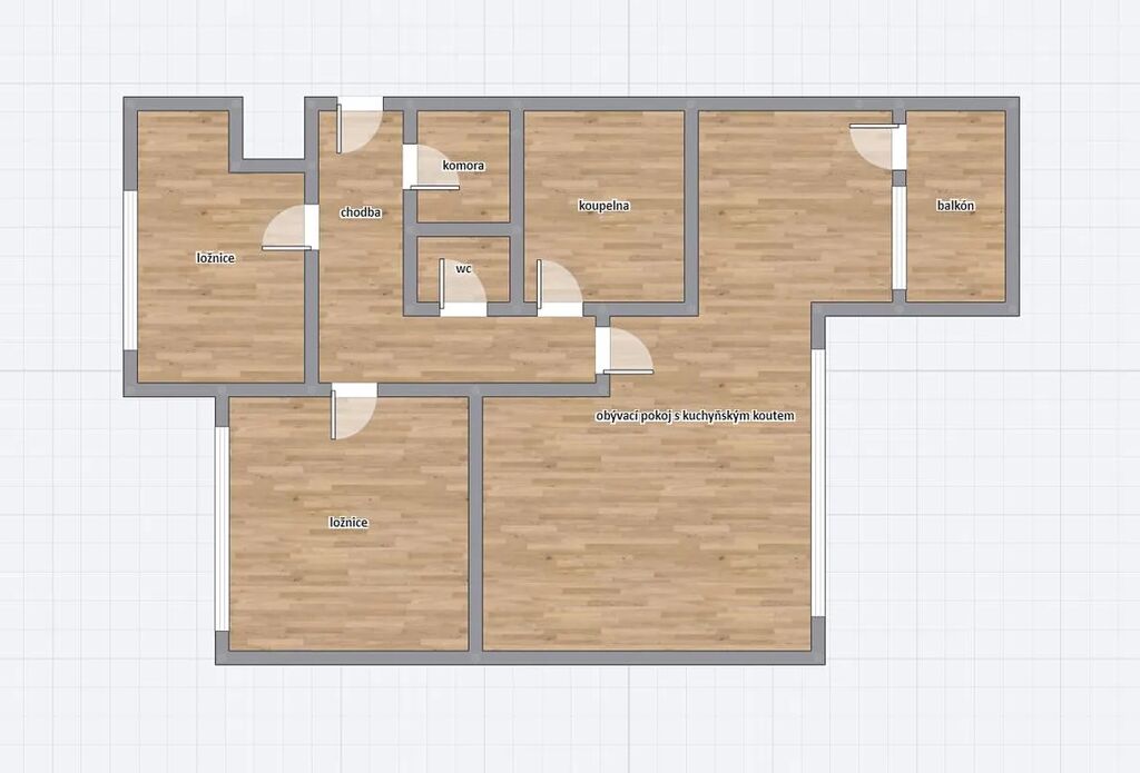 Dvě neprůchozí ložnice s okny na sever, moderní a plně vybavená kuchyň všemi spotřebiči s obývacím pokojem a balkonem situována na jižní stranu. Koupelna s vanou, toaleta zvlášť. K dispozici praktická komora na chodbě.