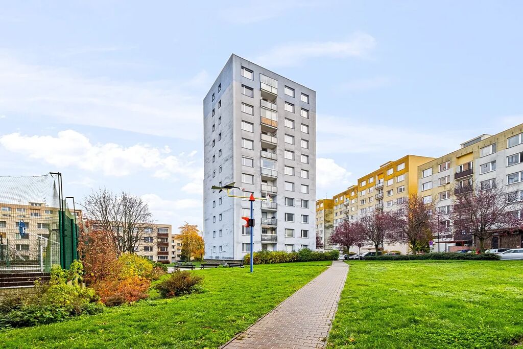 Byt se nachází v 6. patře panelového domu, který je zateplený a je vybaven dvěma výtahy – osobním a druhým, určeným pro přepravu materiálu, což je praktické především při rekonstrukci. Okna jsou plastová, vytápění i ohřev teplé vody jsou dálkově.