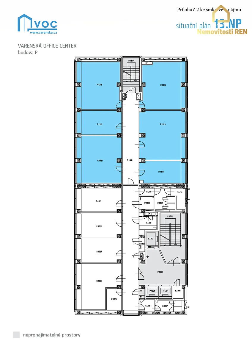 Moderní a atraktivní prostředí nabízí kancelářské prostory o celkové ploše 275 m², které se nacházejí ve 13. patře administrativní budovy.