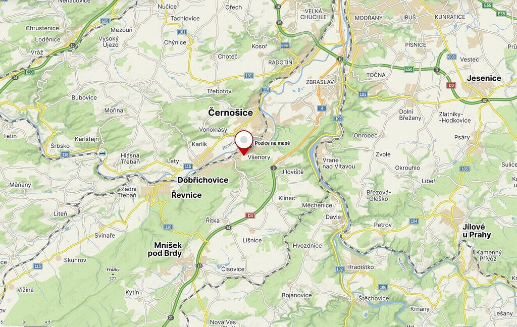 Obec Všenory se nachází v okrese Praha-západ, kraj Středočeský, zhruba 19 km jihozápadně od centra hlavního města Prahy. Všenory jsou vyhledávaným místem turistů a rekreantů díky své poloze, ale také charakterem obce i okolí. Zdejší krajina je tvořena množstvím lesů, romantickým terénem, blízkostí řeky a cvičných horolezeckých skal v Černolicích. Název katastrálního území je též Všenory. V případě zájmu nás neváhejte kontaktovat.