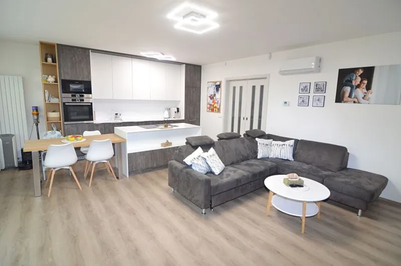 Ve výhradním zastoupení si Vám dovolujeme nabídnout velmi dobře řešenou, patrovou novostavbu řadového rodinného domu 4+kk, se zastřešenou terasou, okrasnou zahradou, garáží a 2x parkovací stání, s užitnou plochu 153m2, v obci Vestec, v nově vzniklé rezidenci "Vestec v zahradách", Praha západ. Jedná se o nemovitost, která je velmi vkusně a nadstandardně vybavená, ve všech pokojích klimatizace, zabezpečení Jablotron. Dispozice v přízemí: obývací pokoj propojený s kuchyňským a jídelním koutem, kuchyňská linka zhotovena truhlářem na míru se spotřebiči (indukční varná deska s vnitřním odsáváním, el. trouba a mikrovlnka (Bosch), vestavná lednice s mrazákem, myčka nádobí), pracovní deska z technického kamene Corian v kombinaci se sklem. Obývací pokoj s posuvnými balkonovými dveřmi se vstupem na zastřešenou terasu 22 m2,(hliník s mléčným polykarbonátem a s elektricky ovládaným zastíněním)a do zahrady a s orientací jihozápadní, toaleta s umyvadlem, šatna, komora a vchod do garáže. V patře jsou tří pokoje, v ložnici nábytek vč. vestavné skříně vyroben na míru, orientace pokojů JZ a SV. Koupelna s vanou a sprchovým koutem, toaleta, bidet 2x umyvadlo, zvlášť toaleta s umyvadlem, technická místnost s plynovým kondenzačním kotlem a zásobníkem teplé vody, prostorem pro pračku. Schodiště do patra obložené vinylem a zábradlí nerez a sklo. Na podlaze vinyl a dlažba. Dveře Sapeli. Okna plastová, trojskla a u všech oken a dveří předokenní, elektricky ovládané rolety, sítě proti hmyzu. Na zahradě nádrž (8m3) na dešťovou vodu. Bydlení nejen v dobré dopravní dostupnosti, v pěší dostupnosti stanice Bus na Metro Kačerov a Budějovická /cca 20 min./ nebo na Metro Opatov /15 min/, sjezd a nájezd na Pražský okruh s propojením na D1, D5 a Letiště /25 min/, ale především v blízkosti přírody a s možností sportovního vyžití: asfaltové cyklostezky s propojením do Průhonického parku, veřejné venkovní posilovny, několik dětských hřišť, fotbalové hřiště, prostor v obci pro koncerty a různé akce. Občanská vybavenost MŠ, ZŠ zajištění dopravy pro školáky, Obecní úřad, pošta, obchodní centrum, hypermarket Albert, Billa, JYSK, lékárna, bankomat, restaurace, cukrárna, kavárna. Hypotéku vám rádi pomůžeme vyřídit.