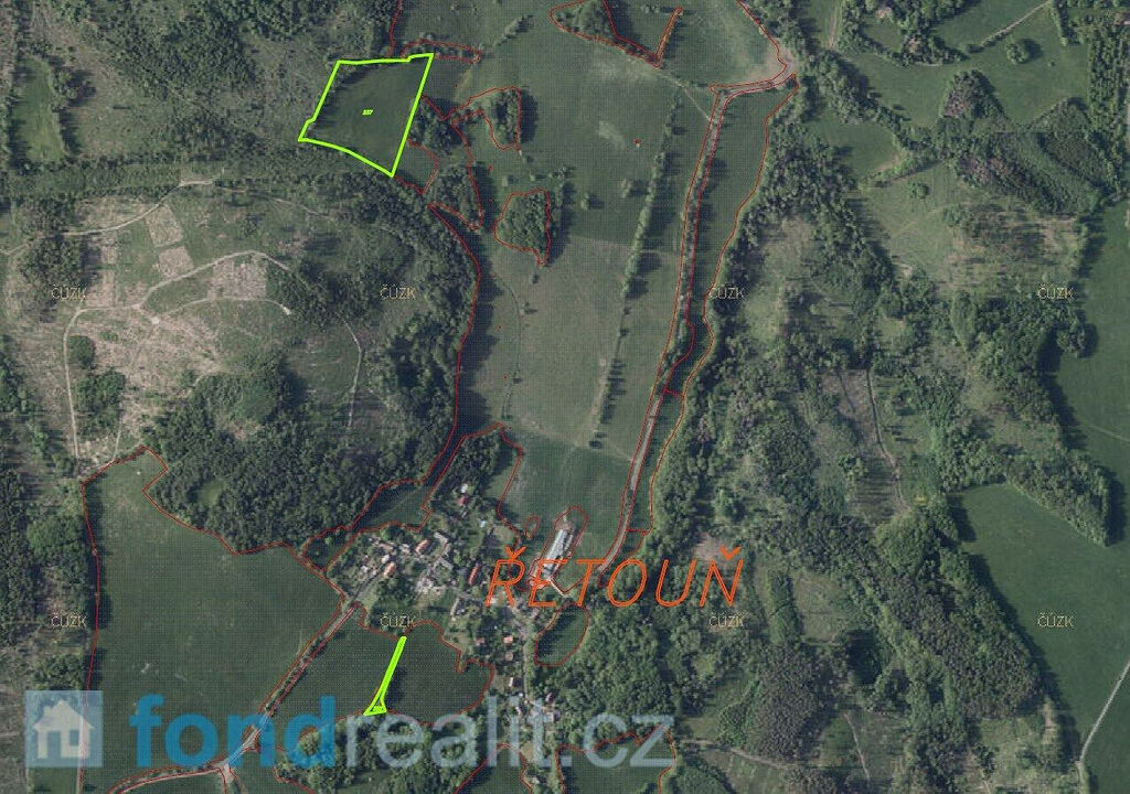 Nabízíme k prodeji dva pozemky o celkové výměře 23 071 m² v malé vesnici Řetouň, část obce Malečov v okrese Ústí nad Labem. Vesnice se nachází asi 4 km na východ od Malečova. Pozemky jsou dle katastru nemovitostí evidovány jako trvalý travní porost. Řetouň je také název katastrálního území. Okolím se protíná mnoho turistických tras, které vedou krásnou přírodou Českého středohoří. Zhruba 5 km od obce se na Lucemburkově kopci tyčí stejnojmenná rozhledna s krásným výhledem na České středohoří. V případě zájmu nás neváhejte kontaktovat.