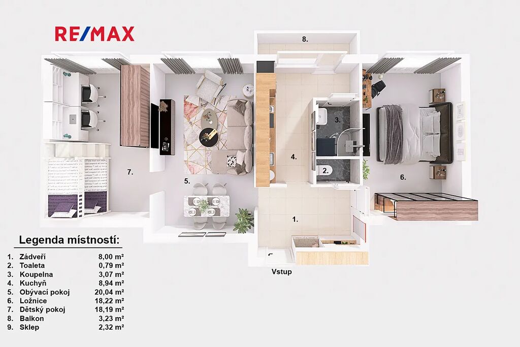 Interiér působí světle, čistě a vzdušně a každá místnost dostojí svému charakteru – útulný obývák pro společné chvíle, prostorné ložnice pro odpočinek i dětský pokoj, který si děti zamilují. Z kuchyně se vychází na balkon – místo ideální třeba pro ranní kávu. A nechybí ani sklepní kóje, kam pohodlně uložíte vše, co zrovna nepotřebujete.