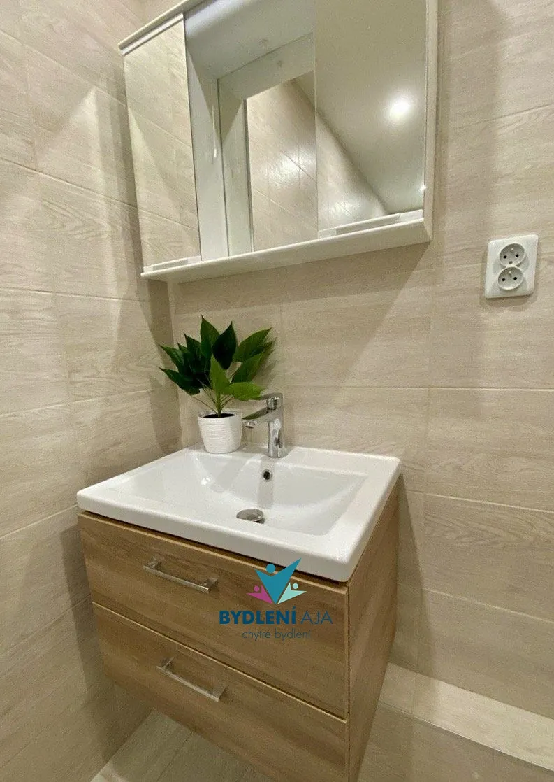 V bytě se nachází kuchyňská linka I, plovoucí podlahy, plastová okna, koupelna se spryhovým koutem a WC.