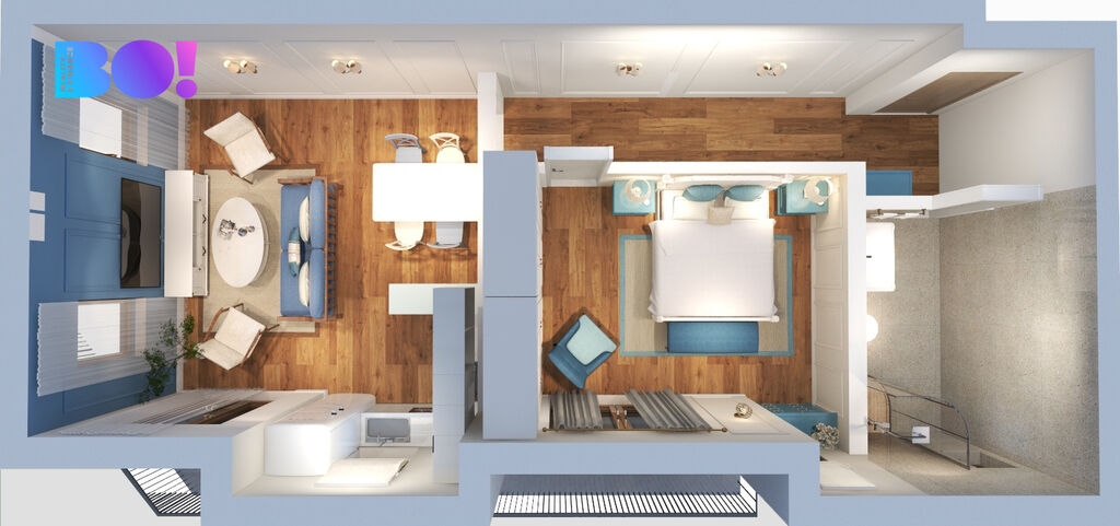 Nabízený apartmán 54.27 m² se nachází v 1.patře s výhledem na moře