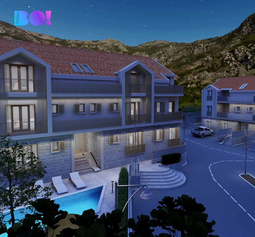 Objevte harmonii přímořského života a moderního luxusu díky naší exluzivní nabídce apartmánů na prodej v novém rezidenčním komplexu v Kotoru - části Risan, vzdáleného 40 minut od letiště Tivat.