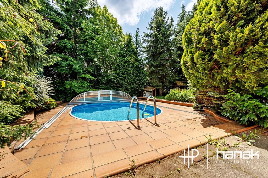 Nemovitost se nachází na výborně situovaném pozemku, které nabízí mimo naprosté soukromí také vzrostlou zahradu a krytý bazén.