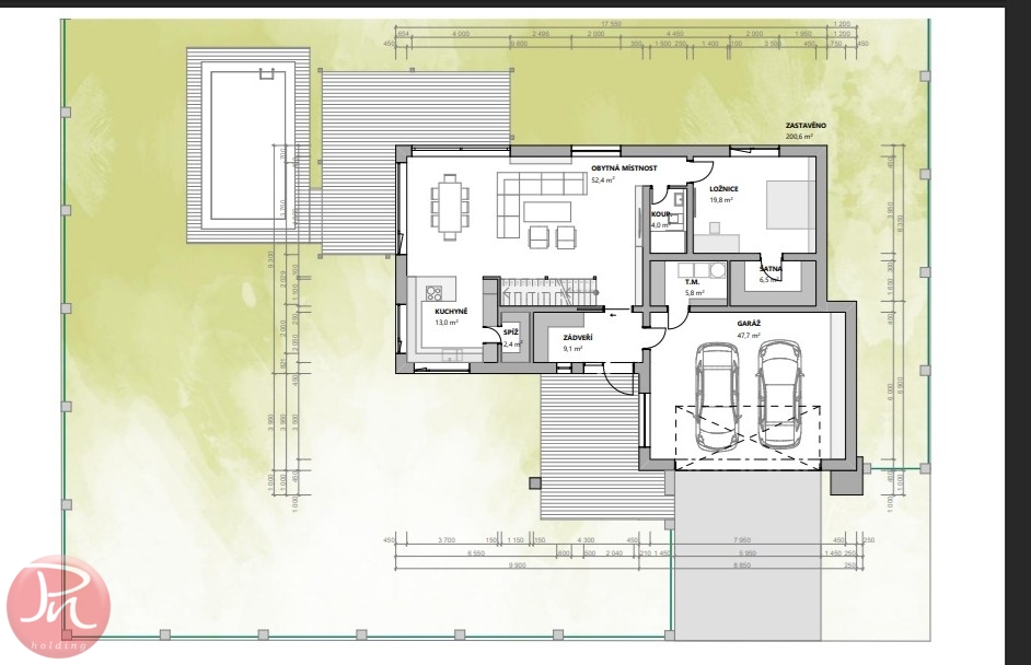 Součástí prodeje je vypracovaný architektonický projekt na moderní, reprezentativní dům od renomovaného studia Ateliér pod věží, který získal stavební povolení.