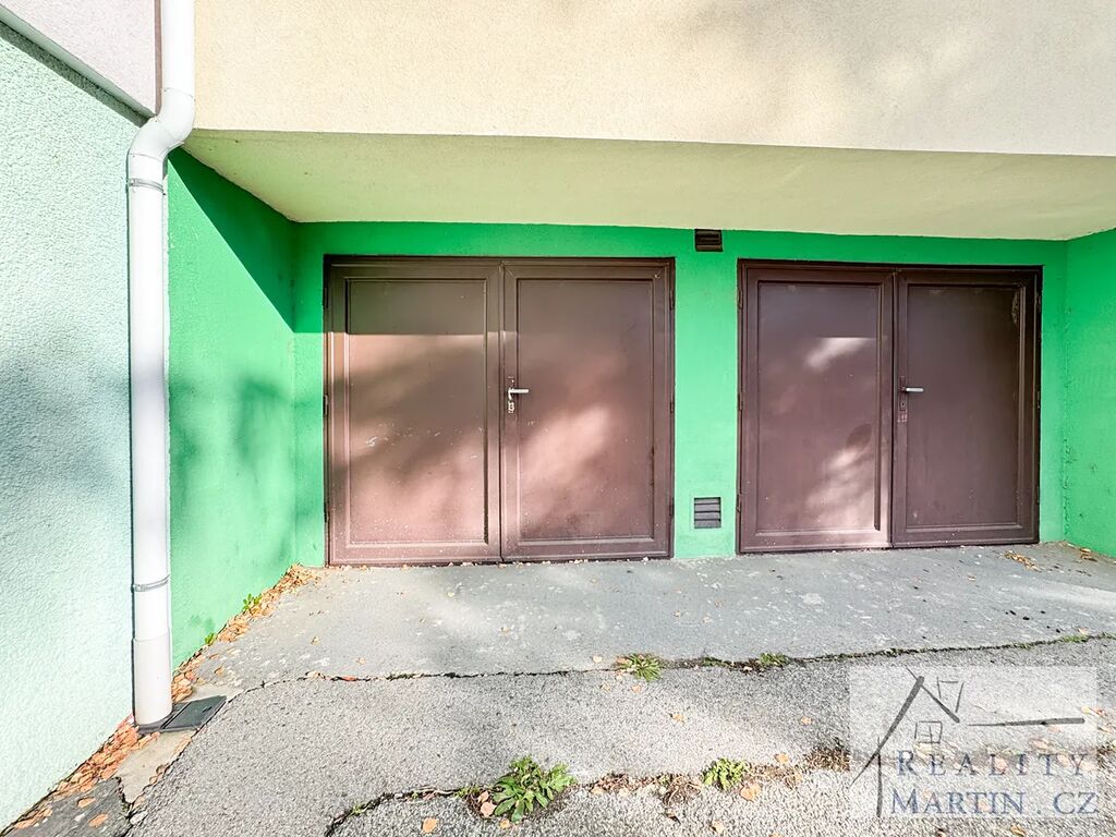 Samostatná garáž v osobním vlastnictví o velikosti 14 m² se nachází ve vedlejším bytovém domě (vzdálenost cca 100 m). Cena garáže je 1.000.000 Kč a je potřeba ji přičíst k ceně za bytovou jednotku. Nelze prodávat samostatně.