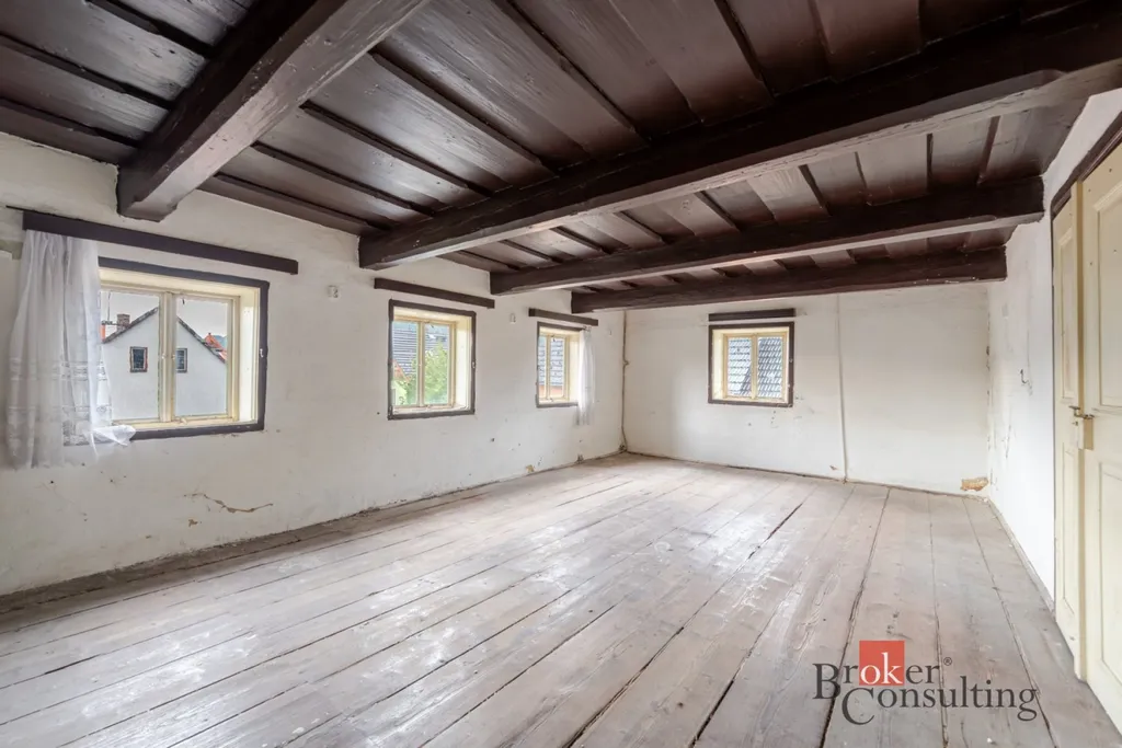 V horním patře je dostatek prostoru pro vybudování několika pokojů. Další možnosti nabízí i prostorná půda, která je zatím nevyužitá. Po úpravách může celková užitná plocha domu dosáhnout až 380 m², což dává prostor pro velkou rodinu, více-generační bydlení nebo částečné ubytování pro hosty. Některé části domu ocení rekonstrukci, což umožňuje upravit si celý objekt přesně podle svého stylu a potřeb.