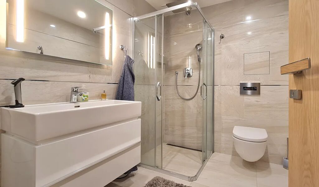Jedna z ložnic má vlastní koupelnu a WC.