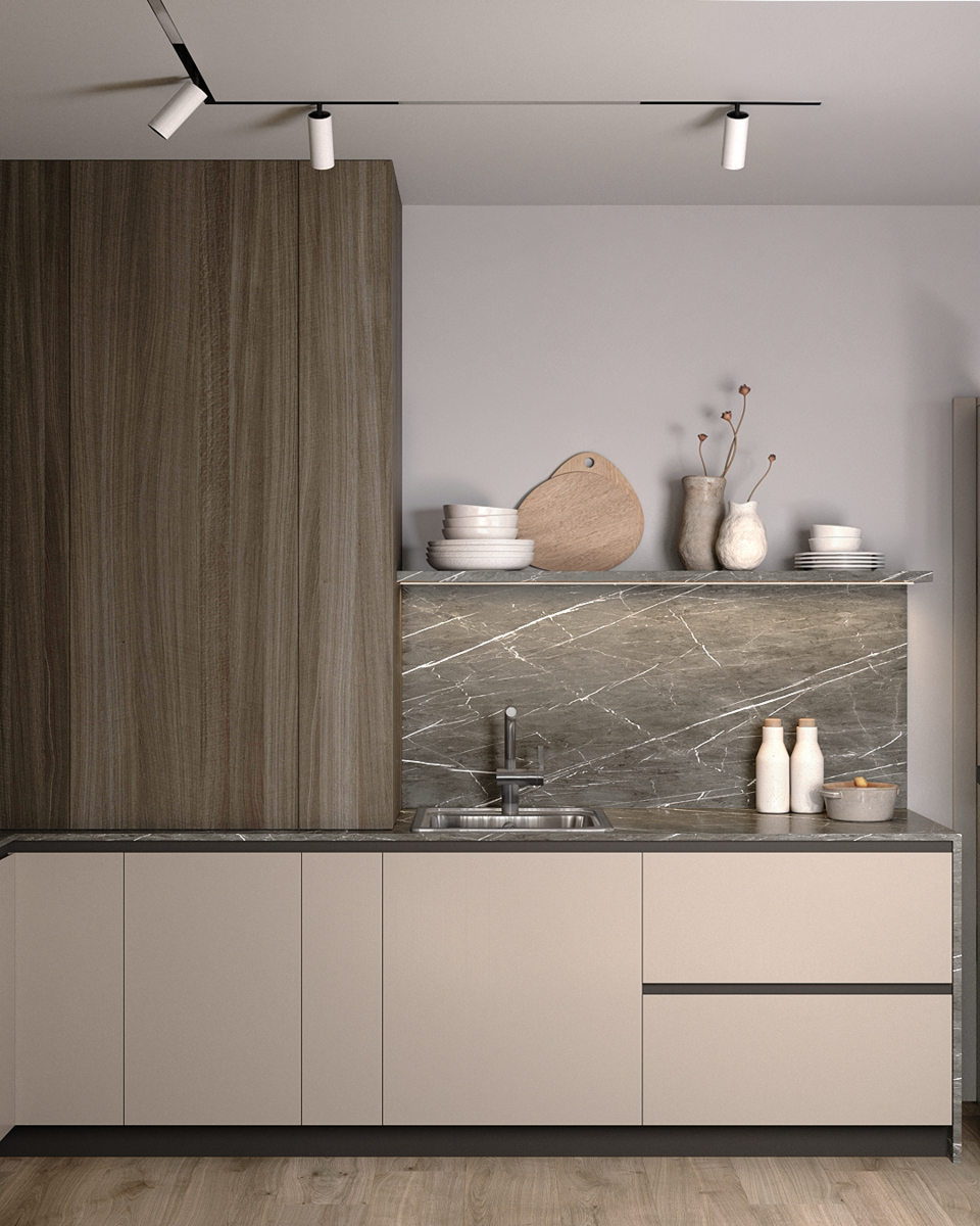 Dispozice bytu je 2+KK o celkové výměře 57,4m2 (obývací pokoj s kuchyňským koutem 23,6 m2, ložnice 17,2 m2, koupelna 4 m2, toaleta 1,1 m2, komora 1,7 m2, předsíň 9,8 m2. Byt se nachází v přízemí v klidné ulici kousek od centra Prahy.