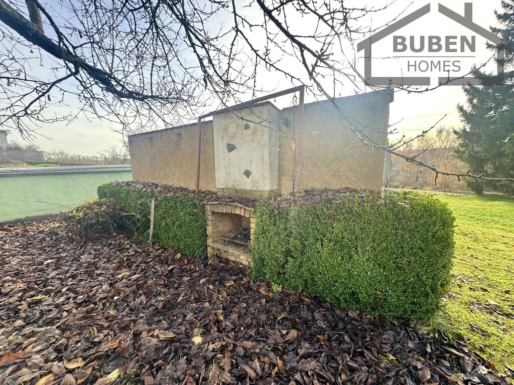 Zahrada se skleníkem a zahradním krbem je udržována a je osázena okrasnými i vzrostlými ovocnými stromy. Zahrada je kompletně oplocená i s pozemkem města o výměře 551 m2.
