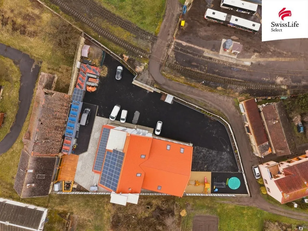 Na pozemku se nachází pět kontejnerových skladů, odpočinková terasa o 80 m, dětské a workoutové hřiště s trampolínou, a také nabíječka pro elektromobily. Vše je doplněno o automatickou bránu s dálkovým ovládáním, kamerový systém, Wi-Fi pokrytí a automatický závlahový systém s okrasnými truhlíky.