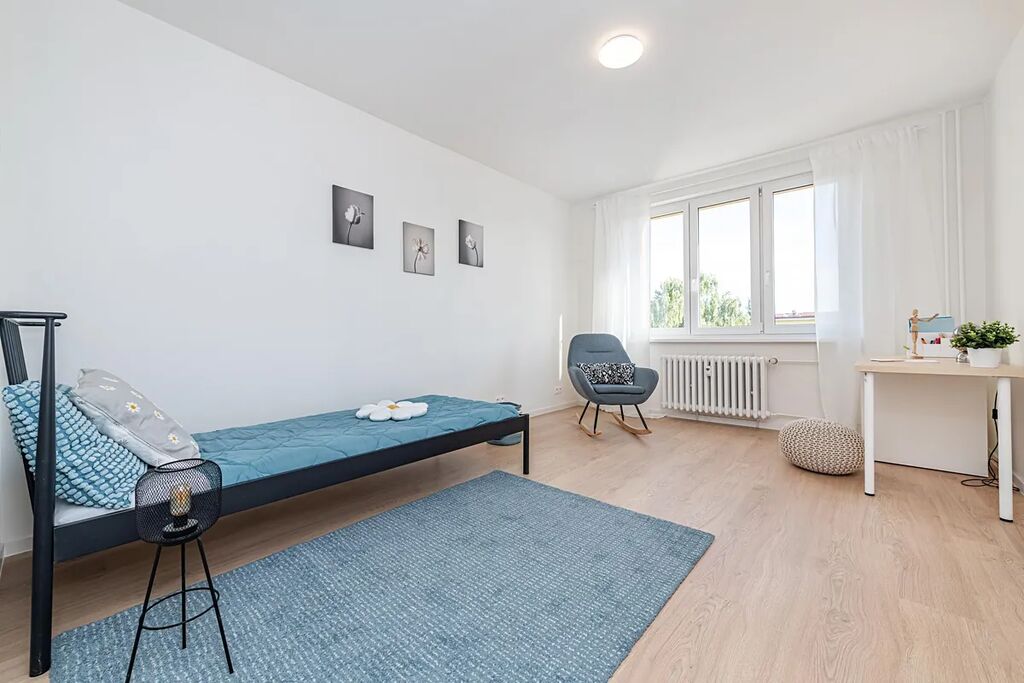 Byt právě prochází kompletní rekonstrukcí, která zahrnuje nové rozvody elektřiny, vody a odpadů, moderní podlahy, kvalitní obklady a dlažbu italské značky Marazzi, novou koupelnu a toaletu se sanitou Grohe a zcela novou kuchyňskou linku vybavenou vestavnými spotřebiči Gorenje s prodlouženou pětiletou zárukou. Díky tomu bude byt k nastěhování ve vysokém standardu a bez nutnosti dalších investic.