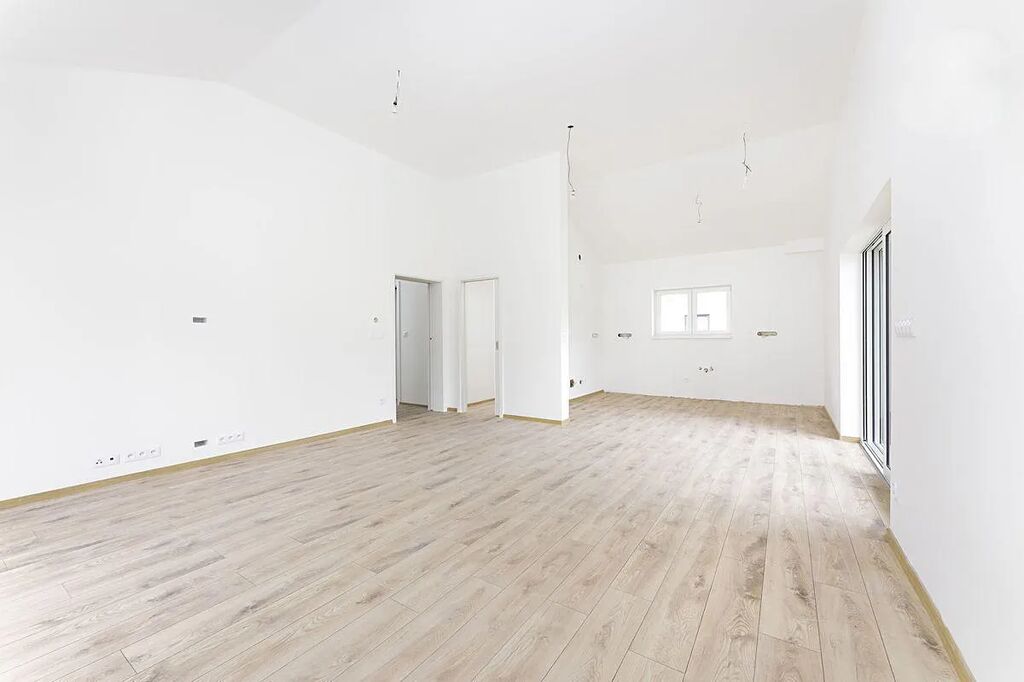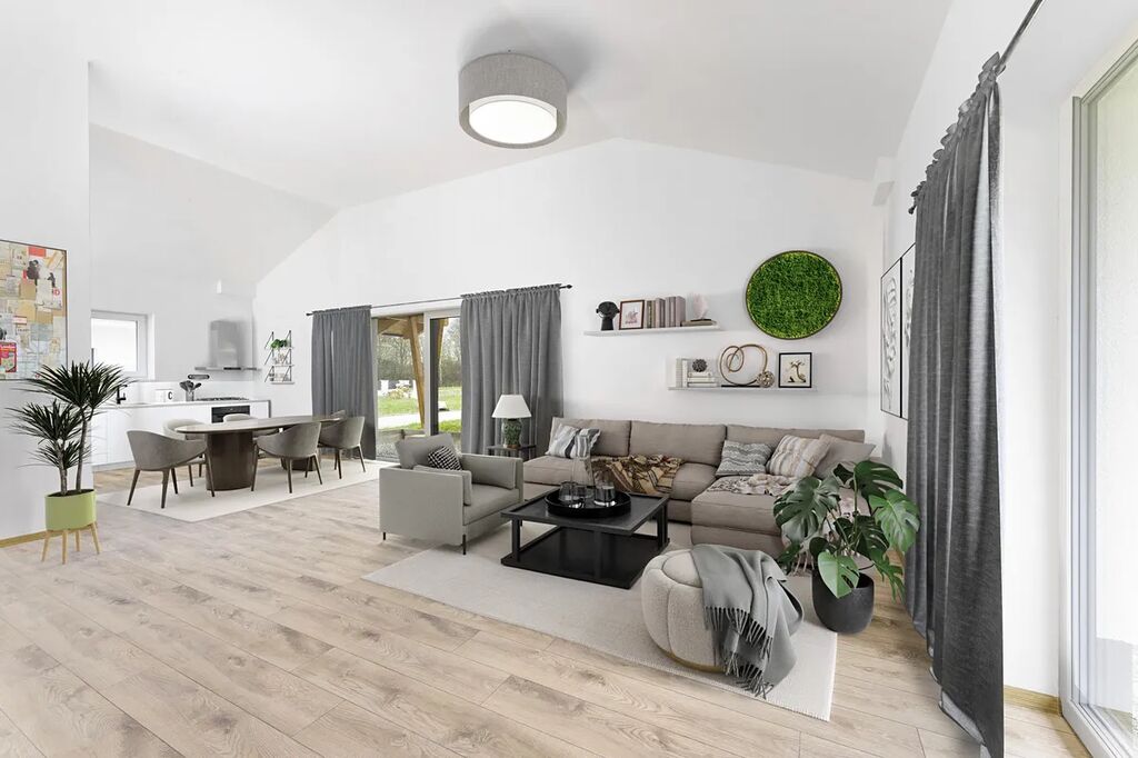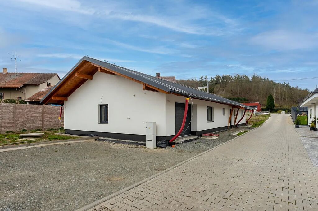 – dispozice domu je 5+kk s prostorným obývacím pokojem, jenž je otevřen celý do krovu