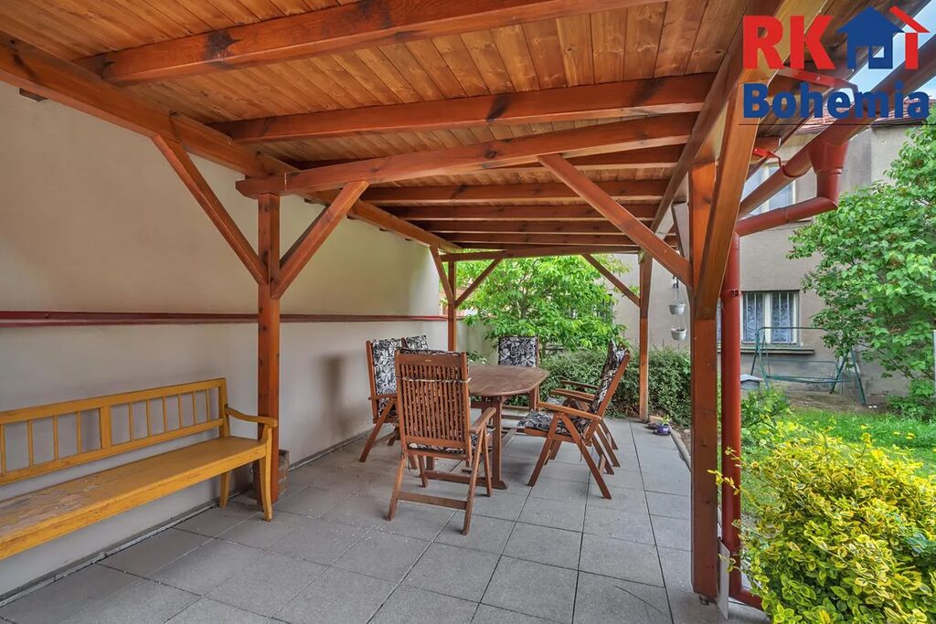Na pozemku se nachází samostatná zděná budova sloužící jako garáž, pergola s posezením a útulná zahrada - soukromá oáza klidu uprostřed města.