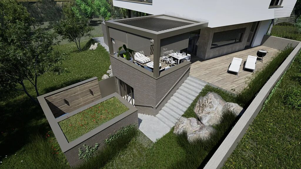 K pozemku je již vydané stavební povolení na výstavbu prostorné třípodlažní vily. Součástí této nabídky jsou také zpracované vizualizace exteriéru i interiéru.