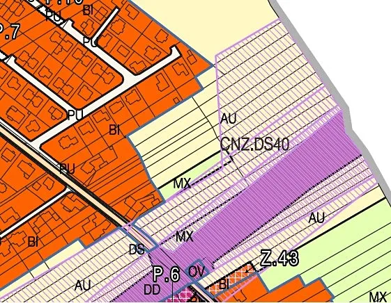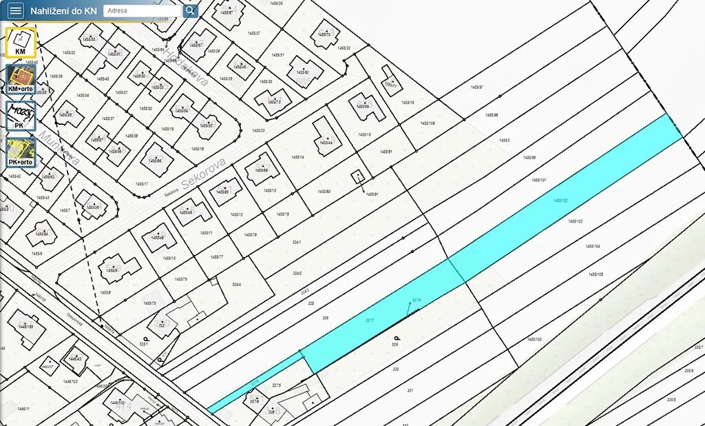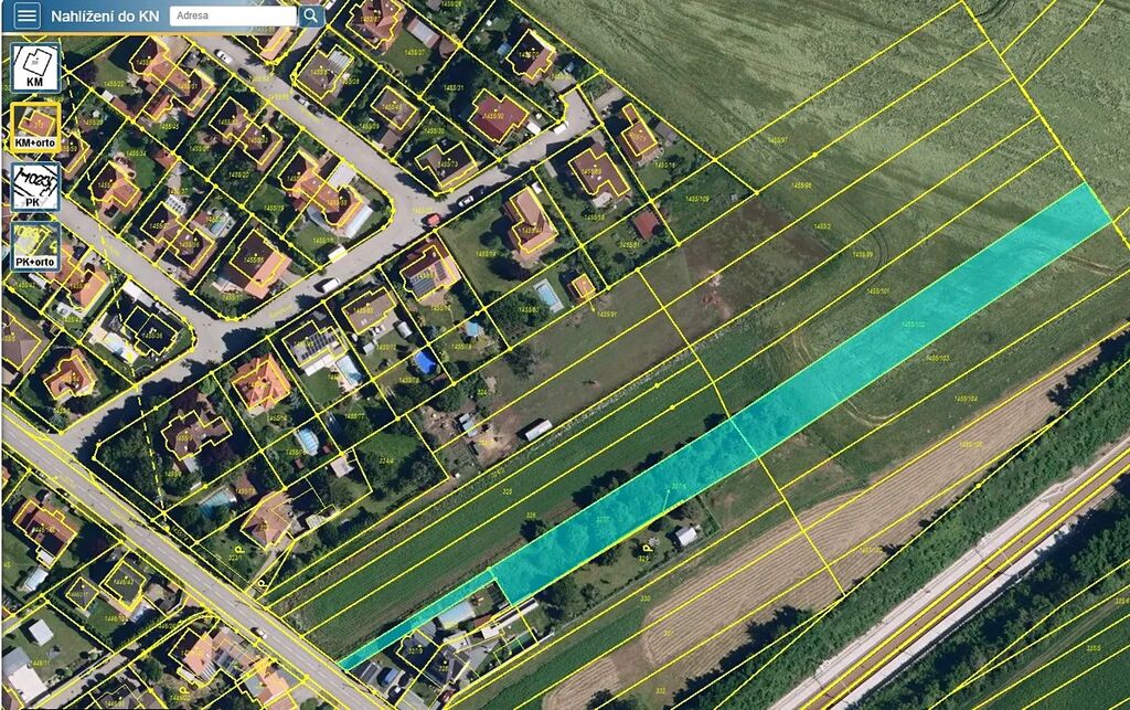 Charakteristika pozemků: • Parc. č. 327/7 (1173 m²) a 1455/102 (1840 m²): Tyto pozemky jsou užívány jako sad nebo zahrada a dle územního plánu jsou regulovány jako plochy zemědělské (AU). • Parc. č. 327/8 (188 m²): Tento úzký pruh je součástí funkčního celku s rodinným domem v cizím vlastnictví a je oplocen. Dle územního plánu je regulován jako plocha bydlení (BI). Na pozemek částečně přesahuje roh garáže a rodinného domu v cizím vlastnictví. • Parc. č. 1455/102: Je také veden jako návrhová plocha CNZ.DS40 – koridor pro komunikaci S43/identifikace. Přístup bezproblémový po zpevněné obecní cestě.