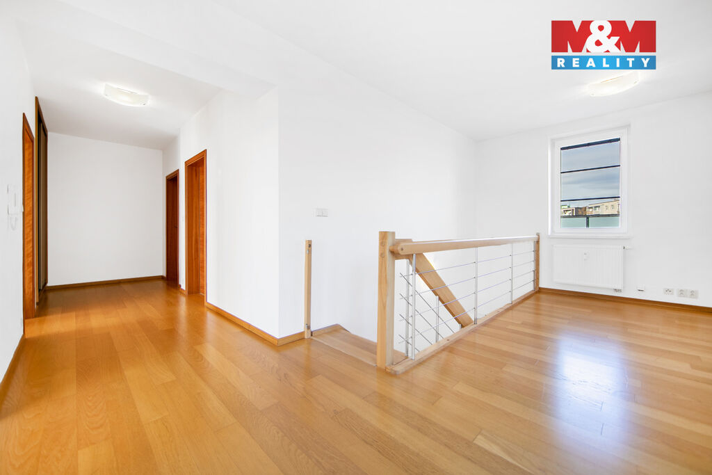 Exkluzivně k pronájmu mezonetový byt o dispozici 4+kk a celkové ploše 150 m² v žádané lokalitě Bolevec s výhledem na Plzeň. Byt se nachází v 5.NP a 6.NP. V přízemí předsíň, koupelna se sprchovým koutem s WC. Prostorný obývací pokoj s kuchyňským koutem o velikosti 87 m² a balkónem 6 m². V patře koupelna s rohovou vanou a WC, ložnice, pracovna, dětský pokoj a nádherná terasa o velikosti 86 m² s markýzou na motor, s příjemným posezením a výhledem na Plzeň. K bytu náleží sklep o velikosti 3 m² a dvojgaráž o ploše 28 m². V celém bytě podlahové topení a deskové radiátory, centrální vysavač, dřevěná plovoucí podlaha a dýhované dveře, ve všech oknech vnitřní žaluzie. Platba nájem ve výši 30.000,- Kč + služby 5.909,,- Kč, za každou další osobu 500,- Kč, platba garáž 497,- Kč. Kauce ve výši 50.000,- Kč + platba za služby dle počtu osob. Odměna RK 36.300,- Kč s DPH. Byt k nastěhování od 1.1.2026 Veškerá občanská vybavenost v dosahu.