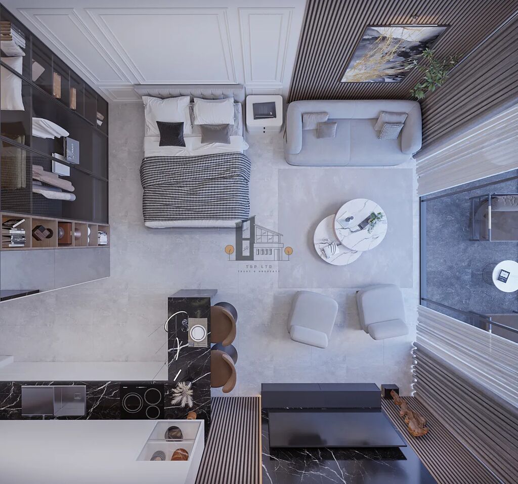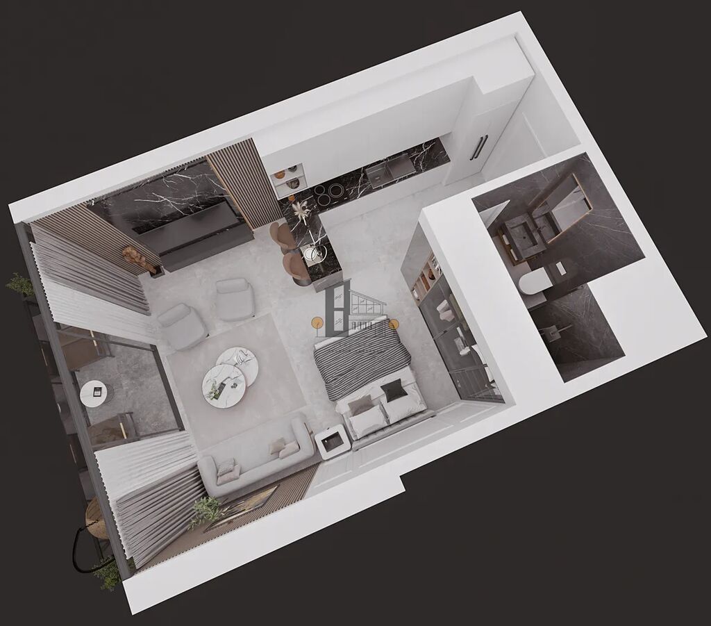 Studio – 55 / 47 m² (hrubá podlahová plocha/čistá podlahová plocha)