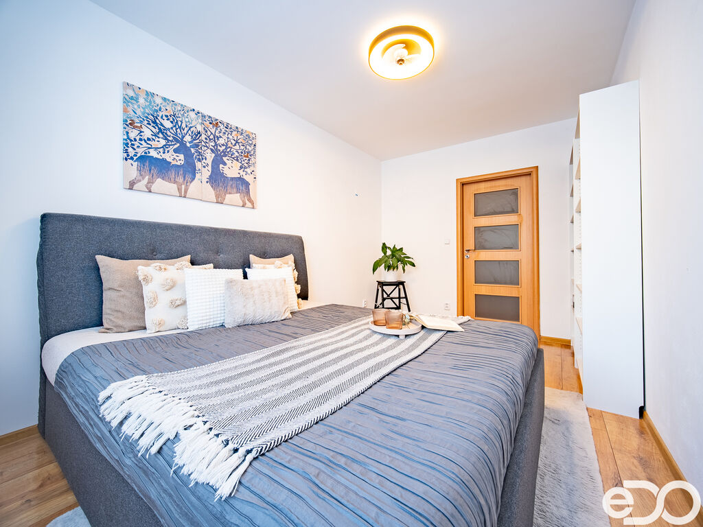 Byt prošel v roce 2022 rozsáhlou revitalizací, která mu dodala čistý, moderní a udržovaný vzhled. Současný majitel nabízí možnost ponechat velkou část vybavení v ceně – nová kuchyňe Katalpa s vestavěnými spotřebičemi Electrolux a Liebherr, pračku, sušičku a další. Byt je tak připraven k okamžitému užívání od prosince 2025.