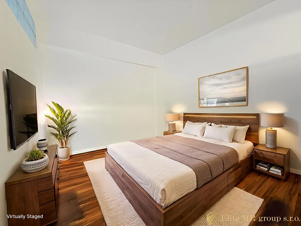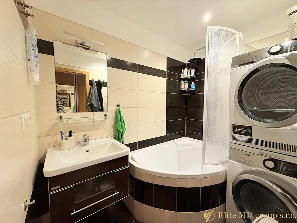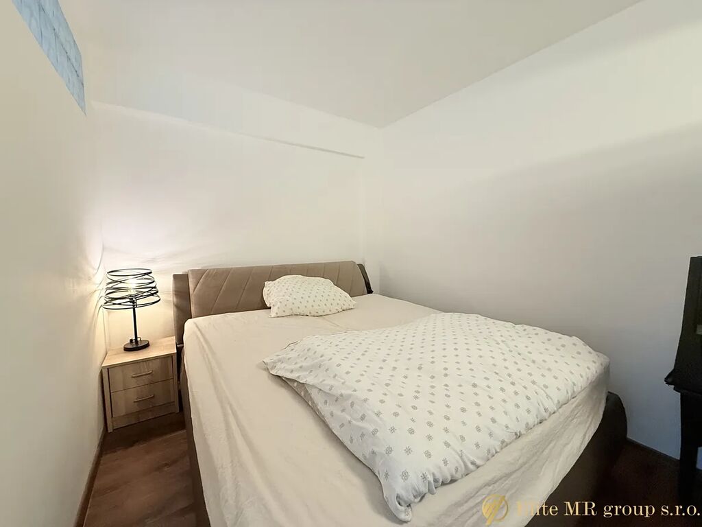 Dispozice: prostorný obývací pokoj s kuchyňským koutem, samostatná ložnice, vstupní hala, koupelna, samostatné WC. Byt je vybaven; aktuální stav odpovídá fotografiím.