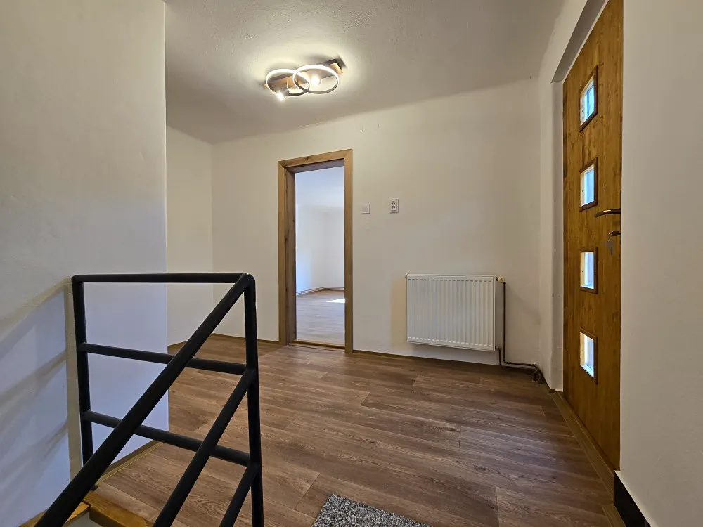 Dům je z poloviny podsklepený a byl v letošním roce z části zrekonstruován. Oprava a nátěr fasády, nově zbudovaná terasa proti vstupu, nová okna a vchodové dveře, kompletně zrekonstruované patro – nové vinylové podlahy, okna, dveře, toaleta, elektřina v mědi, vypínače, světla. K dispozici jsou dva menší půdní prostory, kde lze v případě potřeby dobudovat malé pokojíky pro děti, nebo využít ke skladování věcí.