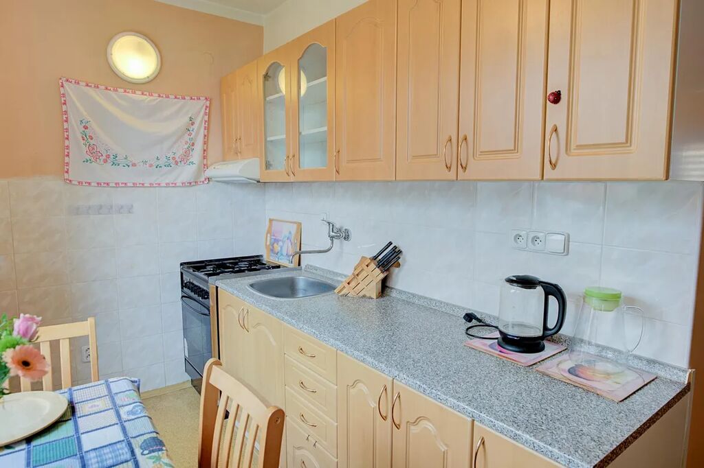 Má tři neprůchozí pokoje, kuchyni, koupelnu s vanou, pračkou, samostatné WC. Přímo v bytě je také komora. V chodbě jsou vestavné skříně.