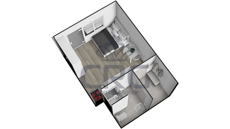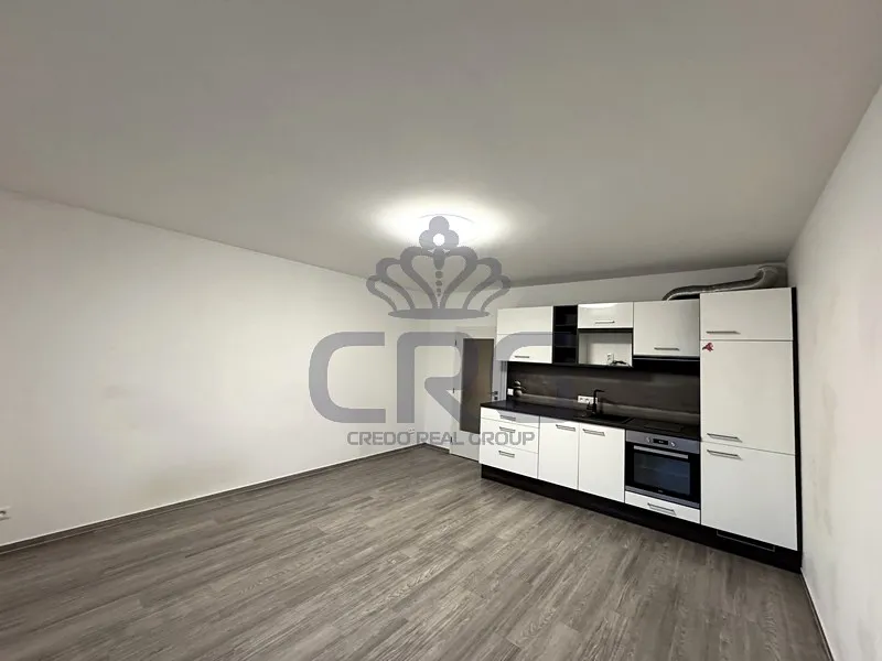 Obývací místnost s kuchyňským koutem je o velikosti cca 22,05 m2. Kuchyně je vybavena dvou plotýnkovou indukční deskou, troubou, lednicí s mrazákem. Hlavní dominantou bytu je terasa o výměře cca 6,24 m2.