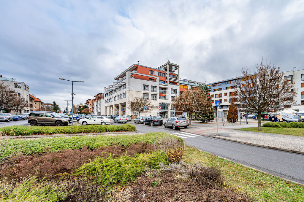 Výhodou je také parkování přímo za budovou. Výborná dopravní dostupnost do metropole jak autem tak veřejnou dopravou (18 min vlakem na Masarykovo nádraží, 10 min autem do Dejvic). Prostory jsou na velmi frekventované ulici.