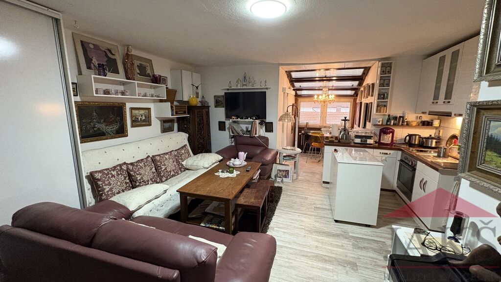 Popis: suterén (cca 60 m2): část. podsklepeno: chodba, potravinový sklep, kotelna (plynový kotel, moderní kotel na dřevo, el. boiler a vývody na pračku), koupelna (rohová vana, sprchový kout, umyvadlo se zrcadlem a skříňkou, topný žebřík a 2x WC), dvou-garáž s el. vraty; přízemí (85,9 m2): obchod: 2x prodejní místnost, chodba, schodiště (do sklepa a do podkroví), sam. WC s umyv., původní obytná kuchyň (kuch. linka s barem a vestavěnými spotřebiči: HV trouba, sklo.ker. deska, digestoř, myčka) s jídelnou, prosklený obývací pokoj (nyní vše užíváno jako prodejna) se vstupem na terasu (posezení); podkroví (49 m2): byt 3+kk: obývací pokoj s kuch. koutem (rohová kuch. linka s HV troubou a dvou-vařičem (sklo-ker.) a digestoří) se spíží, koupelna (umyv. se zrcadlem, sprchový kout, WC, průtokový ohřívač), 2x podkrovní ložnice, šatna a půdička (sklad).