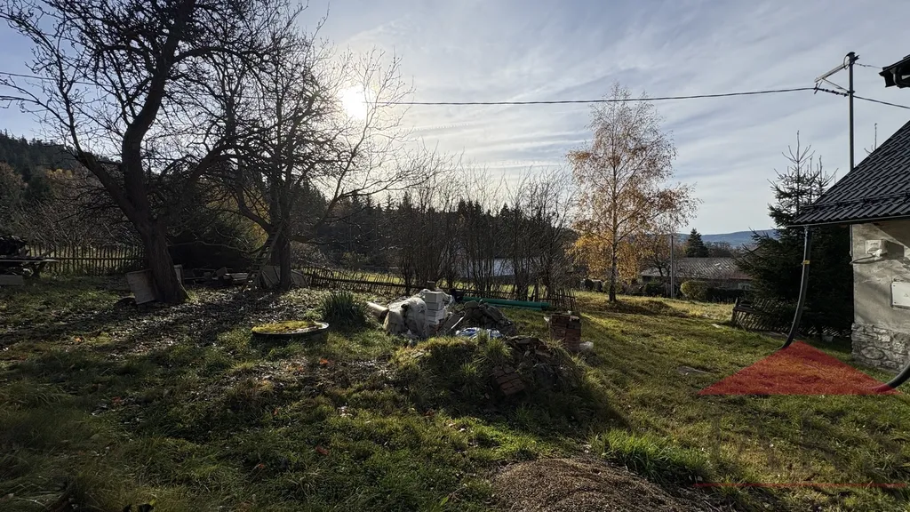 Nabízíme na prodej podsklepenou původní šumavskou chalupu/dům (5+kk; podl. pl: 104 m2) v započaté zevrubné rekonstrukci (k dokončení pouze pohledové prvky) se zahradou 272 m2, stojící na klidném okraji (poslední dům) přímo pod lesem s výhledem v malebné šumavské vesničce Odolenov, ležící v nad-inverzní výšce 680 m.n.m., na západní straně hory Svatobor (845 m.n.m.) s rozhlednou a restaurací, nedaleko města Sušice 5 km.