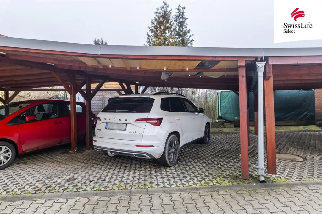 K domu náleží zahrada, dvě parkovací stání před domem a také samostatná garáž o velikosti 48 m stojící na vlastním stavebním pozemku ideální nejen pro parkování, ale i jako dílna, sklad.