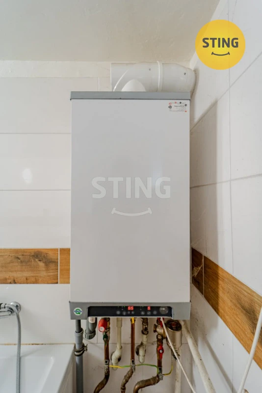 V koupelně je nový kondenzační plynový kotel ,který vytápí celý byt do radiátorů a zároveň ohřívá teplou vodu . Elektřina je nová v mědi .Voda je obecní vodovod a odpad je sveden do kanalizace.