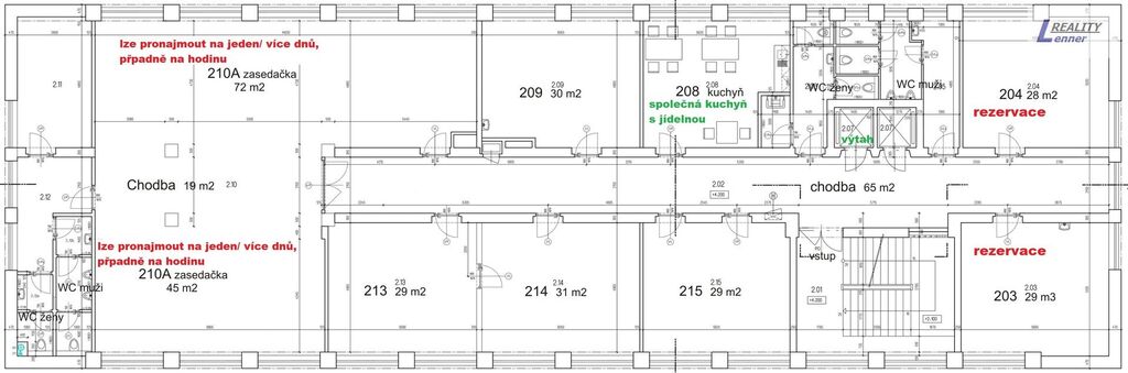 1. patro: 29 m², 30 m², průchozí 29 + 30 m²