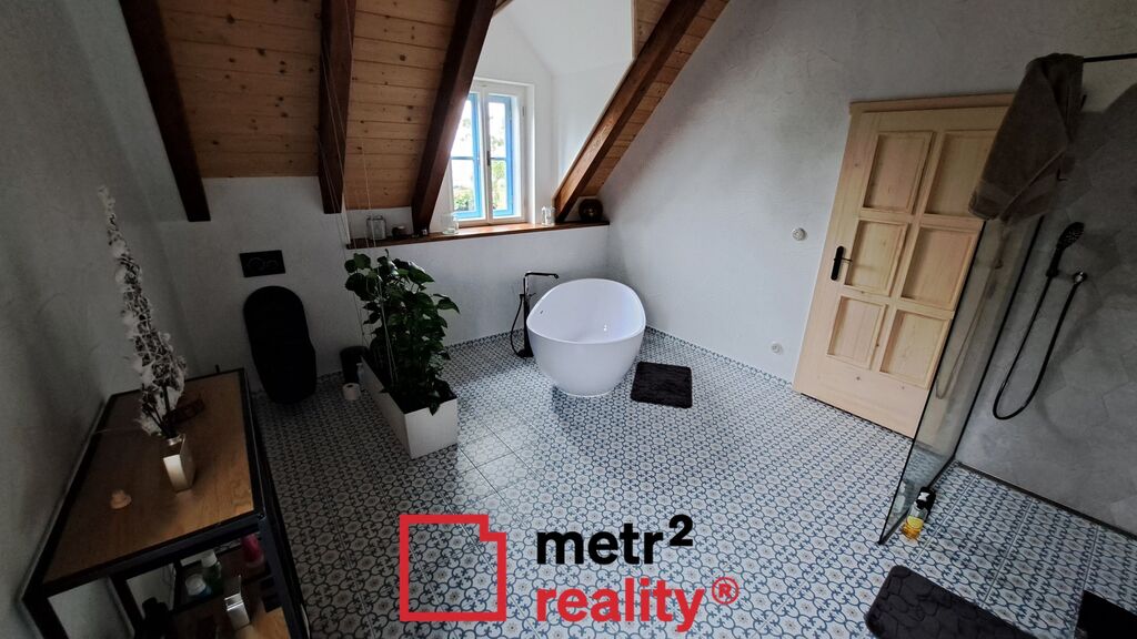 • prostorné zádveří a chodba s dřevěným schodištěm