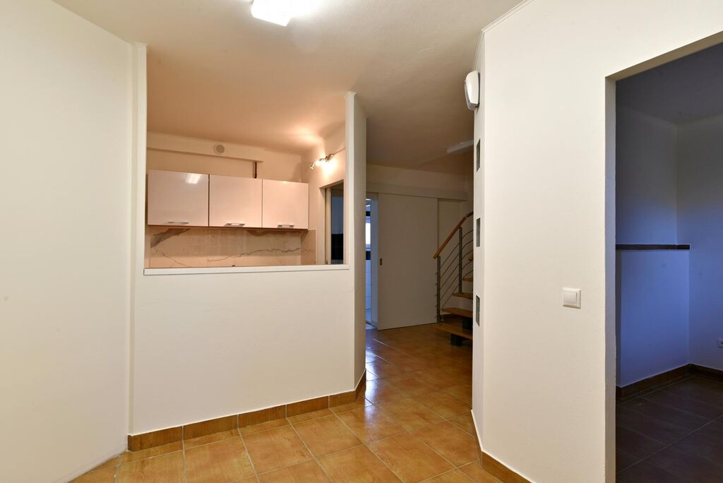 V přízemí se nachází vstupní chodba, samostatná místnost cca 12 m2, dále kuchyňský kout s kompletně vybavenou kuchyňskou linkou včetně spotřebičů a lednice a také koupelna se sprchovým koutem a toaletou.