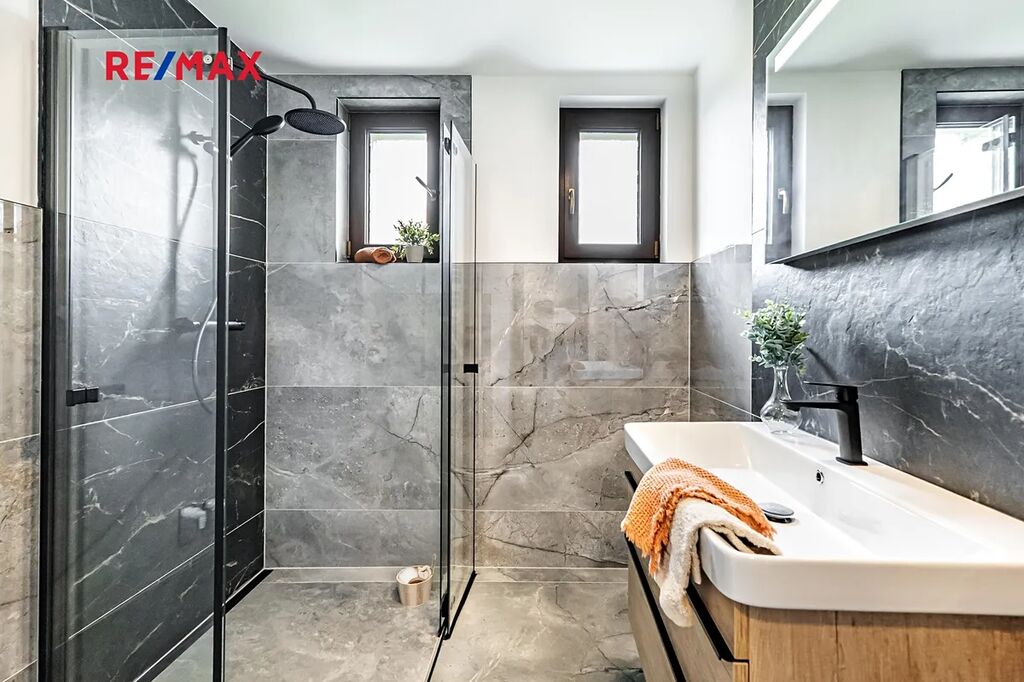 V suterénu najdete garáž (přičemž parkovat lze i na parkovišti u domu), technické zázemí, dostatek úložného prostoru a navíc spoustu místa třeba pro domácí posilovnu nebo saunu. Nechybí zde ani sprcha s toaletou, kterou můžete využít mj. na umytí domácích mazlíčků.