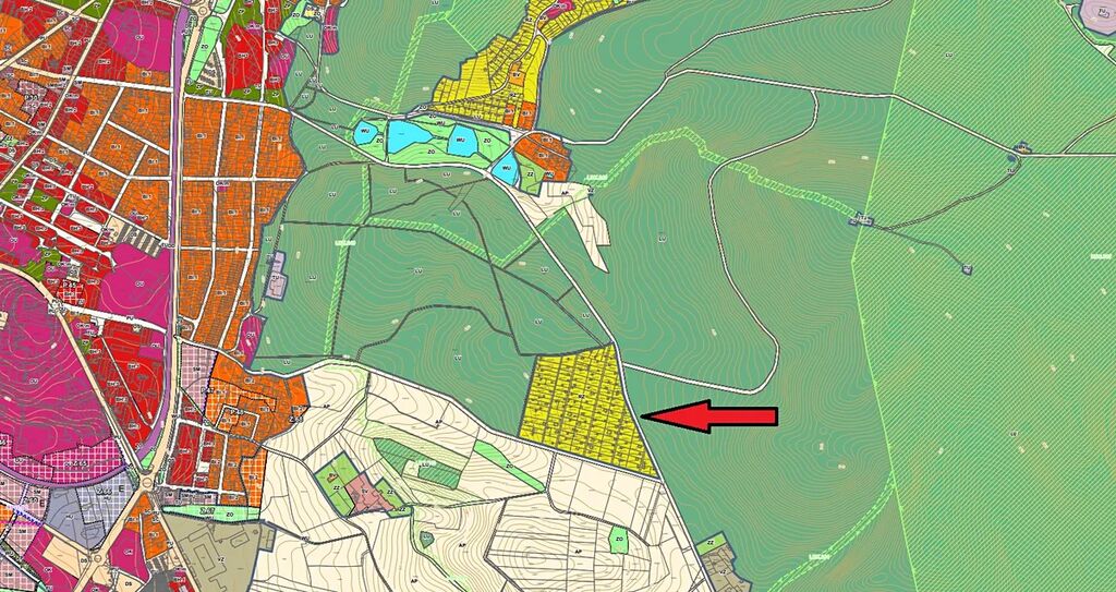 Z hlediska územního plánu se jedná o stavební pozemek v zastavěném území obce, v ploše s funkčním využitím "RZ" (Rekreace - zahrádkářské osady) a lze na něm vystavět dům o půdorysné ploše do 90m2 s výškou hřebene do 6m. V této osadě je již postaveno několik celoročně obyvatelných zděných domů.