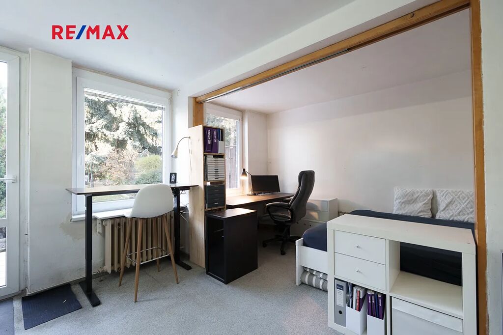 • Přízemí: bytová jednotka 1+kk (pokoj 19 m², koupelna s vanou a WC 5 m²) se samostatným vstupem ze zahrady – ideální pro hosty, nájemníka či práci z domova. Dále zádveří (3 m²), chodba se schodištěm (6 m²), garáž (13 m²) a technická místnost (3 m²).