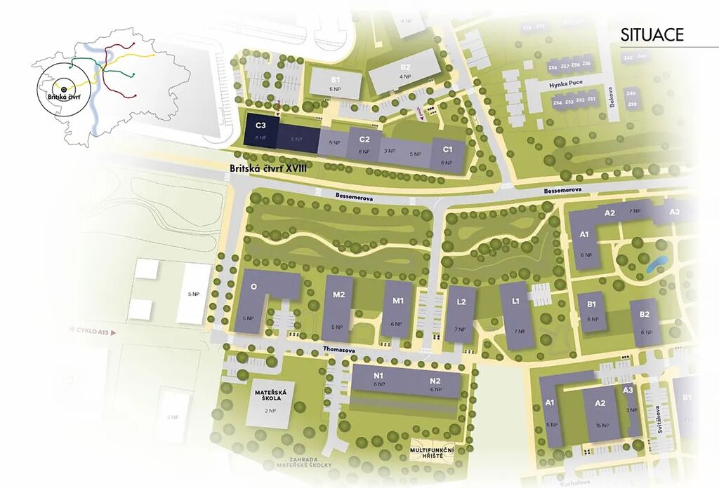 Nabízíme k prodeji byt o dispozici 4+kk v osobním vlastnictví. V developerském projektu Britská čtvrť od společnosti Finep. Užitná plocha bytu je 97,3 m2 + lodžie výměře 10,4 m2. Byt se nachází v pátém patře domu s označením C3 a má ideální jižní orientaci. K bytu je možné přikoupit dvě garážové stání a komoru 3,9 m2 vše umístěno ve 1PP. Projekt Britská čtvrť nabízí vynikající dostupností, pouze jednu minutu chůze od stanice Stodůlky V blízkosti je kompletní občanská vybavenost, jako: poliklinika, školy, školky a obchody a supermarkety.