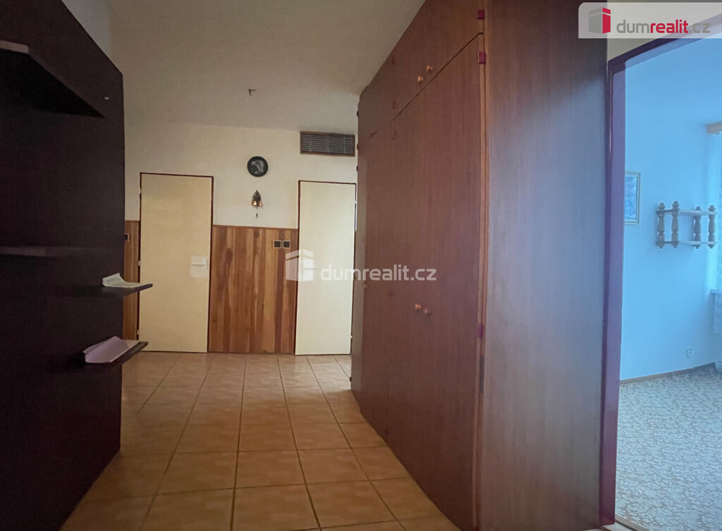 Popis: z centrální předsíně (14,50 m²) s úložným prostorem v podobě vestavěné i samostatné skříně je vstup do jednotlivých místností: 3 x ložnice (Z or. do klidné, slepé ulice), koupelna s vanou, oddělené WC, vstup do kuchyně (5,16 m²) a OP s jídelnou (25,25 m² ) a lodžií (JV or, do zeleně), komora (2,82 m²).